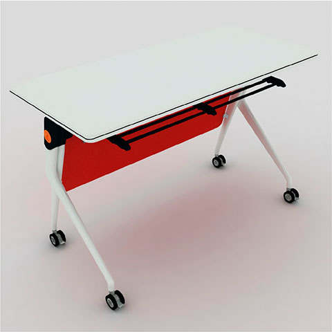 Mesa Apilable reclinable y apilable. Superficie en melamina blanca. Espacio para poner cuadernos mientras se utiliza como mesa. Formato: 1400*600*750